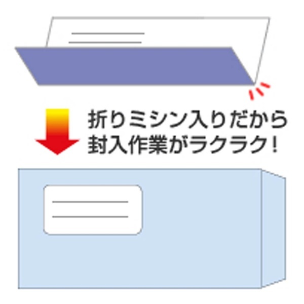 インクジェットプリンタ、コピー機でもお使いいただけます。無地タイプなので、使いやすい設計で帳票を印刷できます。封筒に入れたとき、透けにくいように裏面に地紋が入っています。折りミシンからきれいに折っていただけます。