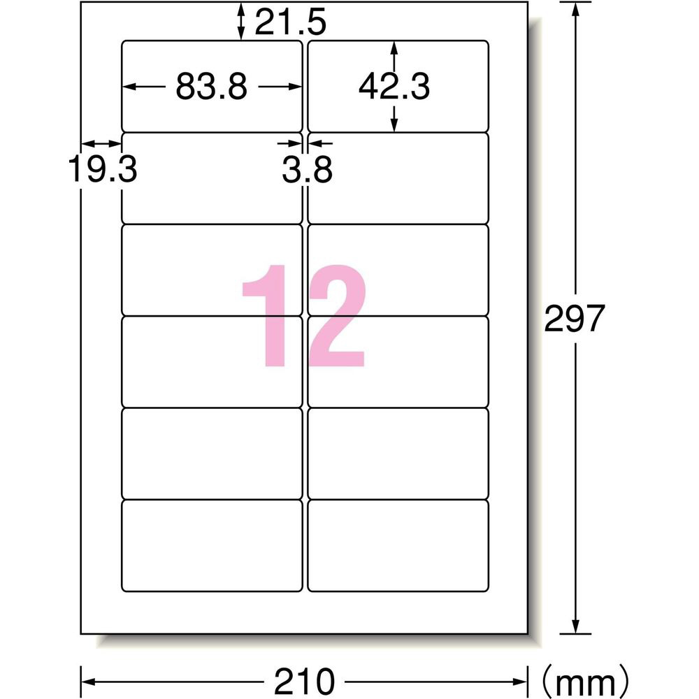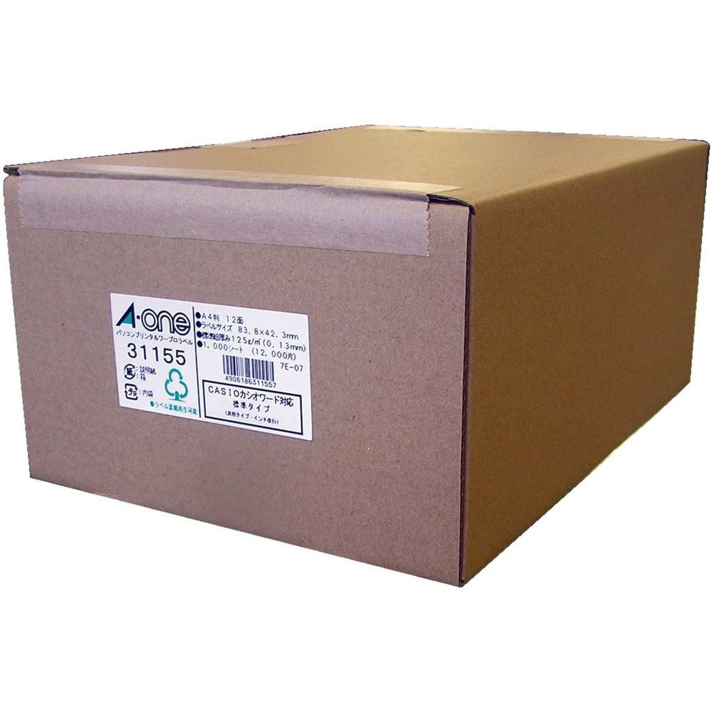 パソコンプリンタ&ワープロラベル 汎用タイプインチ改行 (A4サイズ・12面・1000枚) 31155