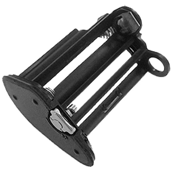 F100に標準装備の電池ホルダー。単3形アルカリ乾電池、または、単3形リチウム電池4本を収納します。