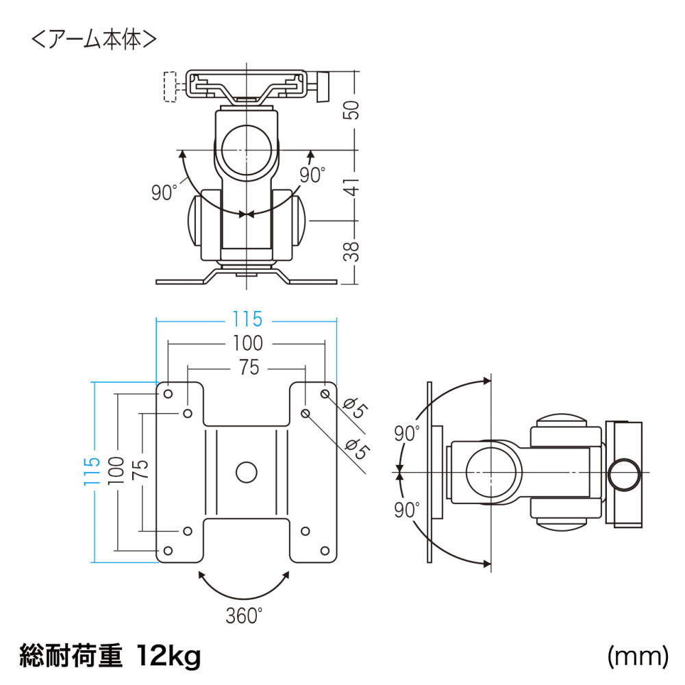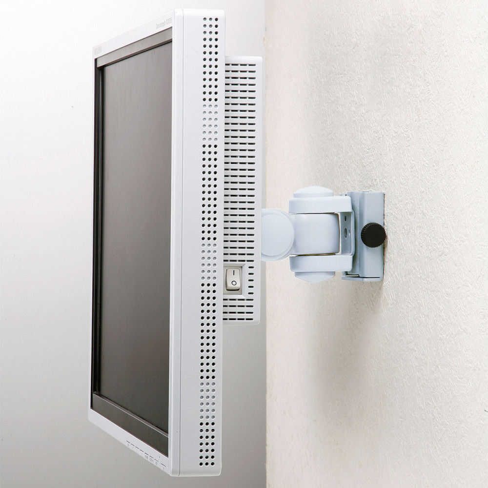 壁面へ取付けるタイプの液晶モニタアーム。液晶テレビの取付けにも対応。