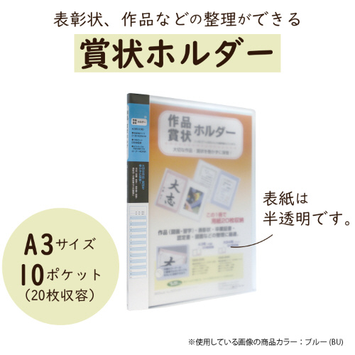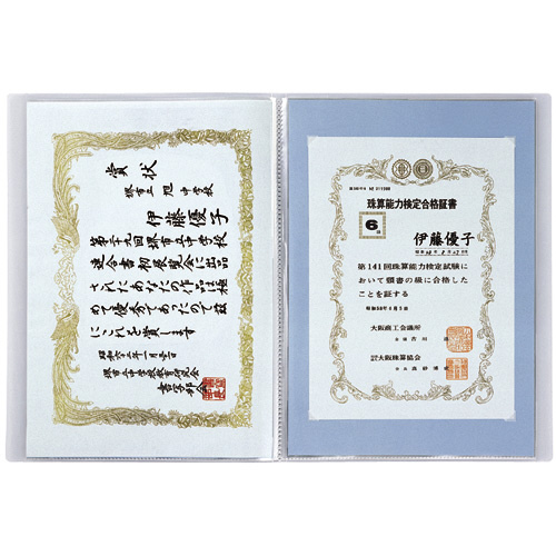 表彰状・卒業証書・作品「図画・習字」などの整理に最適。半透明PP表紙の溶着式賞状ホルダー。