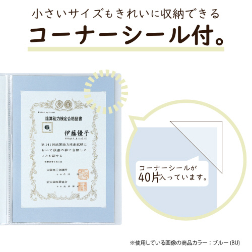 ポケットは見開き、ページをめくりやすい溶着式のホルダーです。