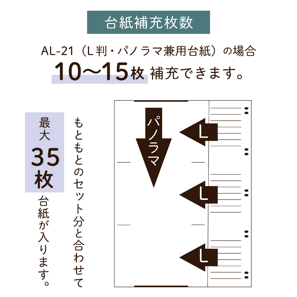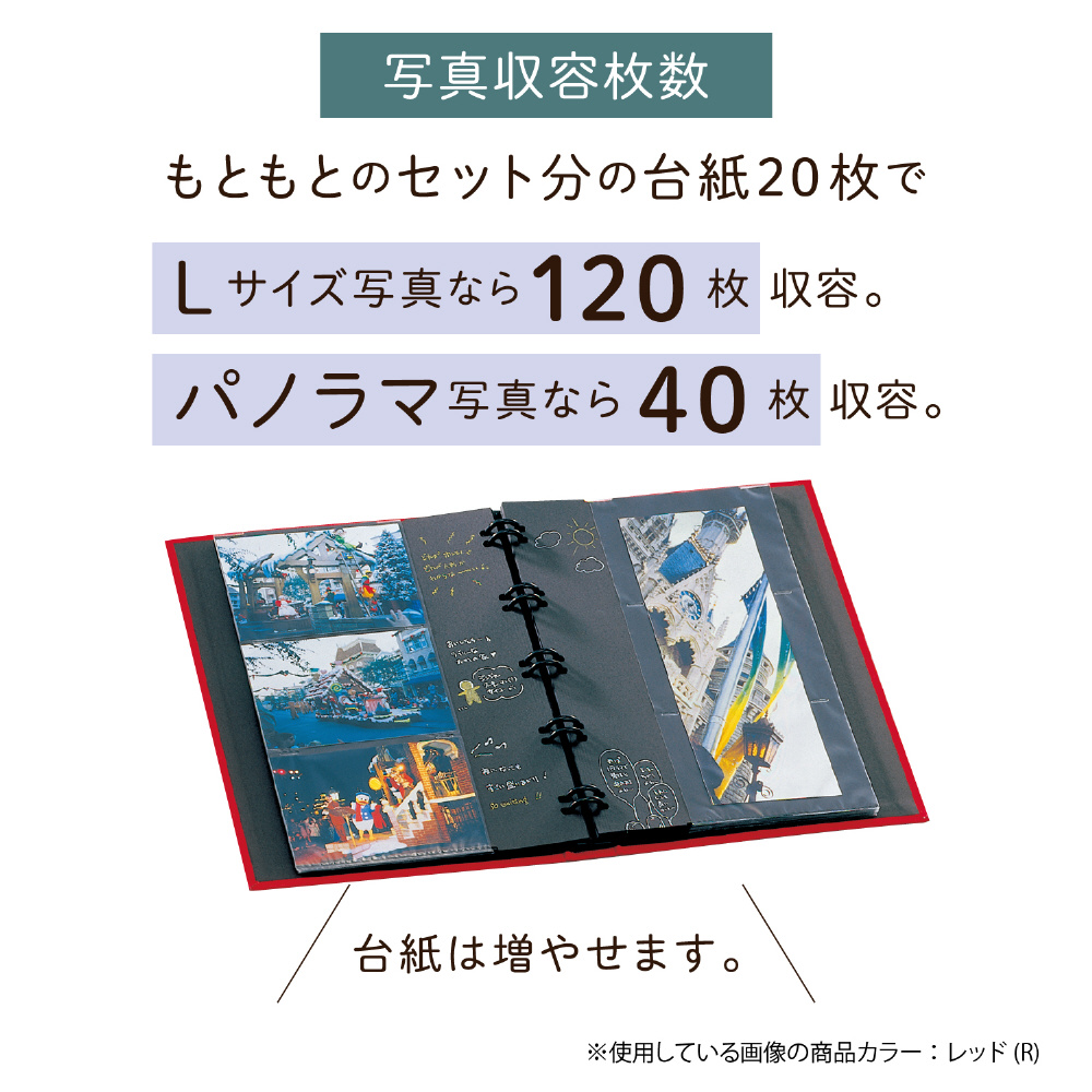 カジュアルなカラーデニムを使用した布貼り表紙のポケットアルバム。台紙が増やせるバインダータイプです。