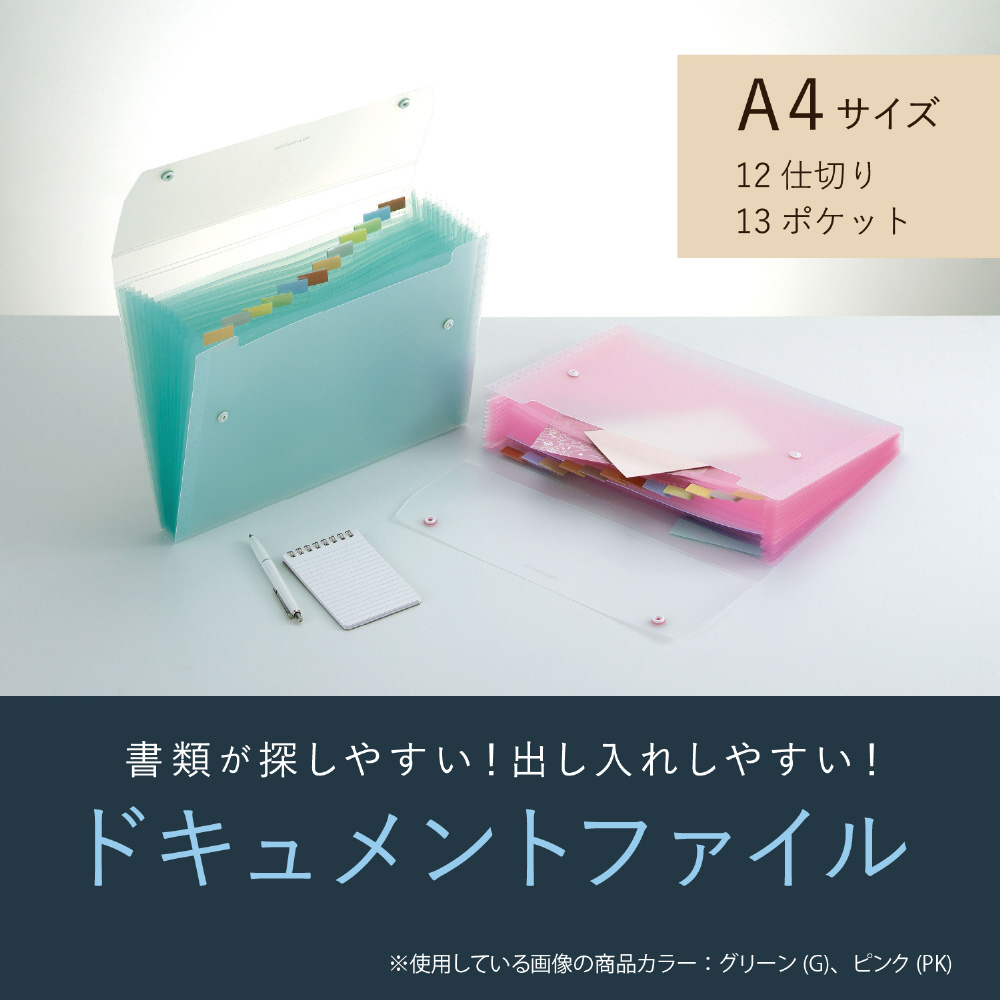 書類が検索しやすく、出し入れしやすい。13ポケットのドキュメントファイル