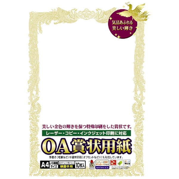商品名 OA賞状用紙 横書用(A4サイズ・10枚・白) 10-1061 【864】