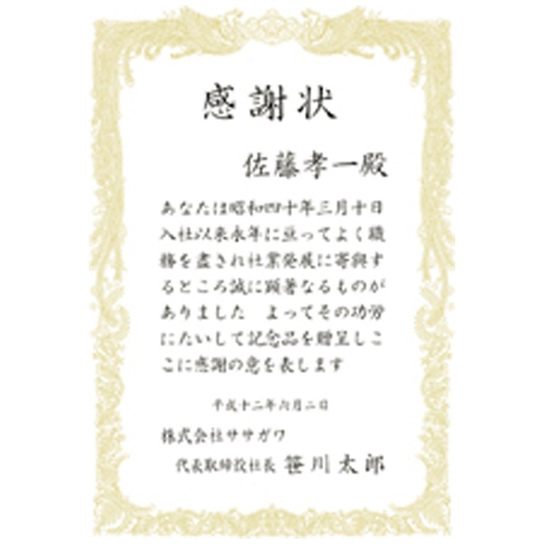 ◆幅広い用途のベーシックな白地タイプ。◆テンプレートを利用すれば、簡単に美しい賞状が作成できます。テスト印刷用紙2枚付です。◆もちろん従来からの手書きや通常印刷(凸版やオフセット)にも使用できます。