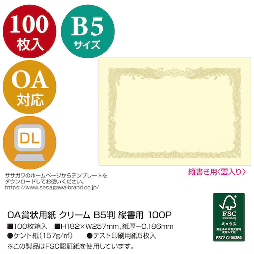 OA賞状用紙 B5判 縦書用 クリーム 10-1157