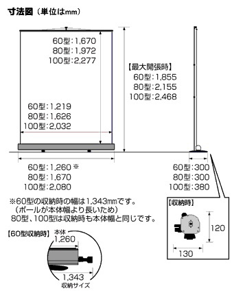 | スクリーンサイズ(収納時) | 130×120×1670mm |