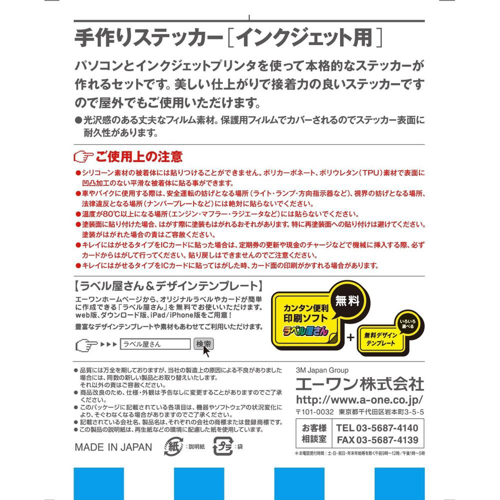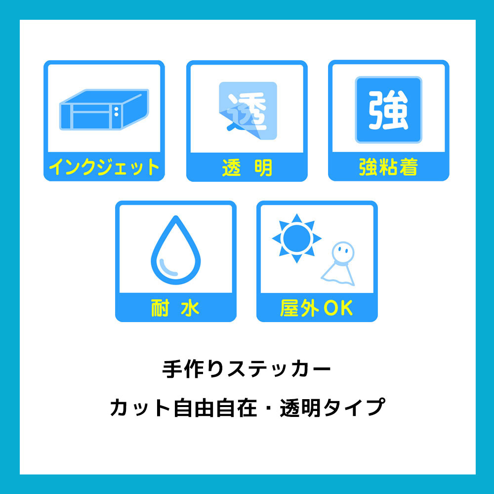 28873 手作りステッカー 透明タイプ(A4・ノーカット/印刷用透明フィルムラベル+保護用透明フィルムラベル/3セット)