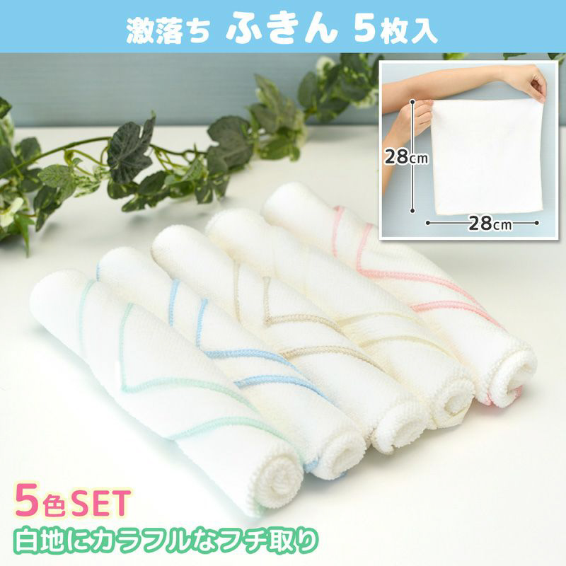 マイクロファイバーふきん得用5枚入り。