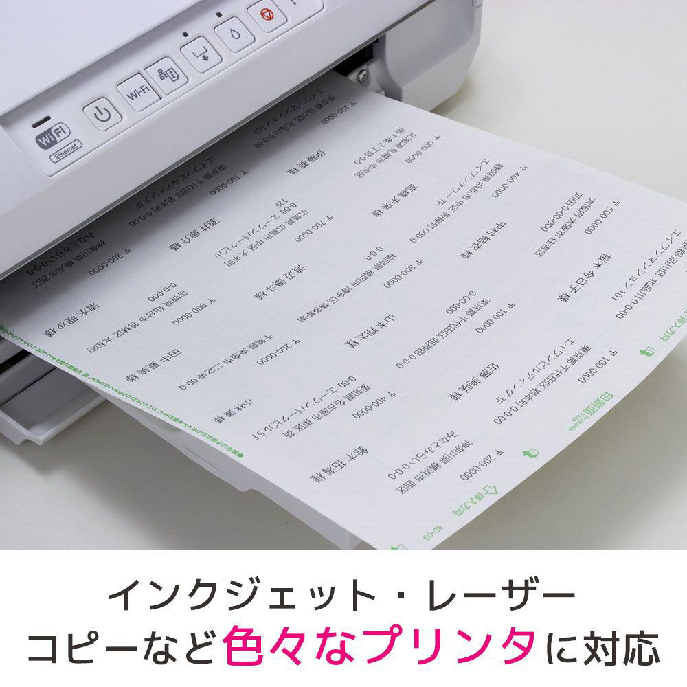 いろいろなプリンタで印刷できるラベルシールです。22シート(396片)入り。