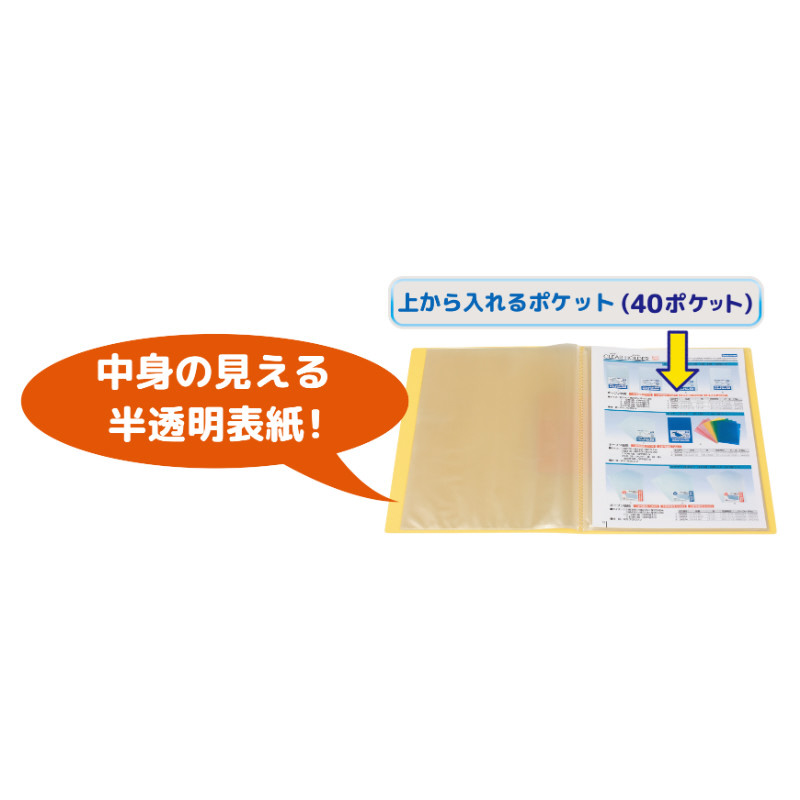 スリムクリヤーブック File by File A4-40ポケット、中身の見える半透明表紙