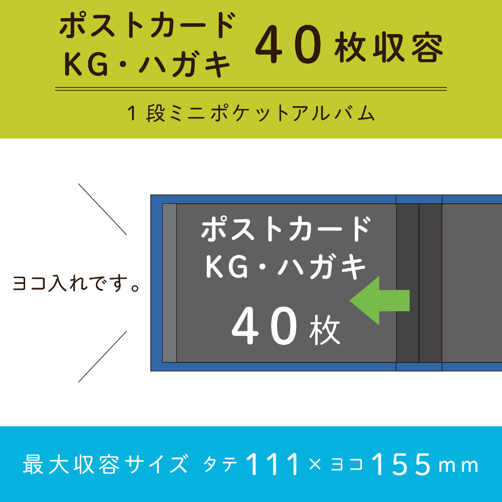 L判より少し大きなサイズのKGサイズアルバム(40枚収納)ポストカードやハガキの整理にも最適です。