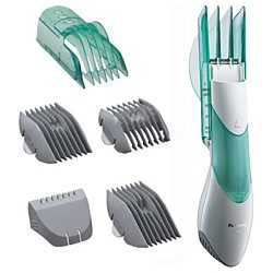 毛くずが飛び散らない毛くず吸引機能付。多彩なアタッチメントで、ショートカット(長め)〜丸刈りまで。