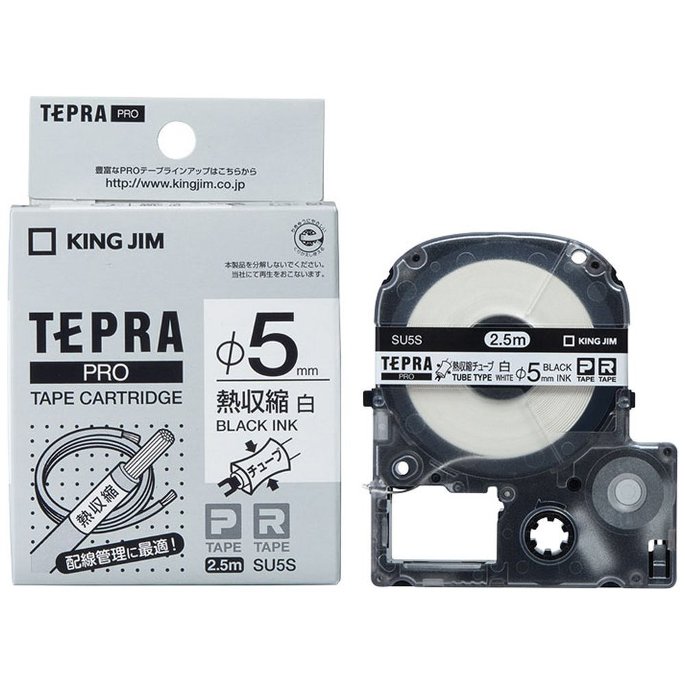 SU5S 熱収縮チューブ 「テプラPRO」(白チューブ/黒文字/φ5mm)