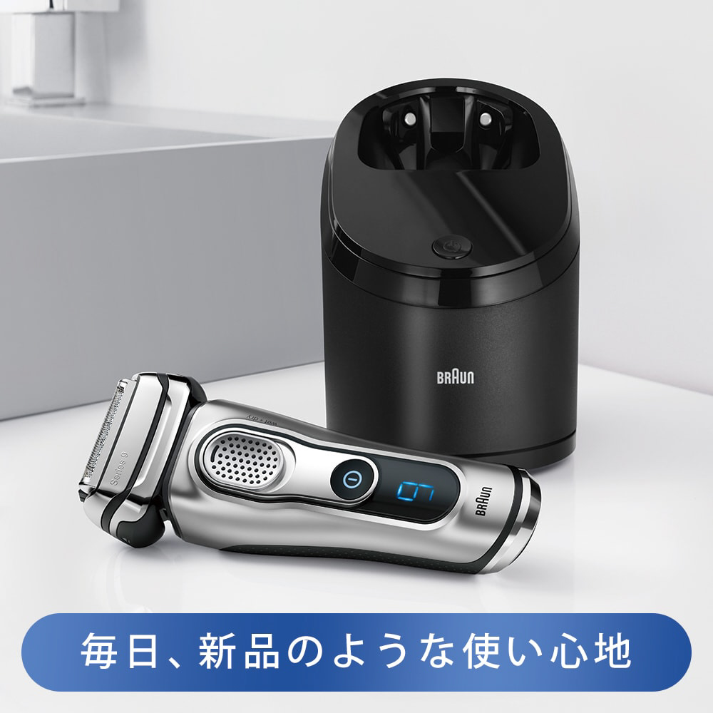 ブラウンの自動洗浄システムは、ヒゲくずやは肌の粒子を取り除きシェーバーを清潔に保ちます。