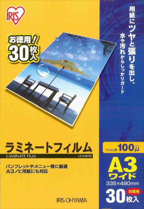 | 商品名 | LZ-A3W30 100ミクロンラミネーター専用フィルム(A3ワイド/30枚) |