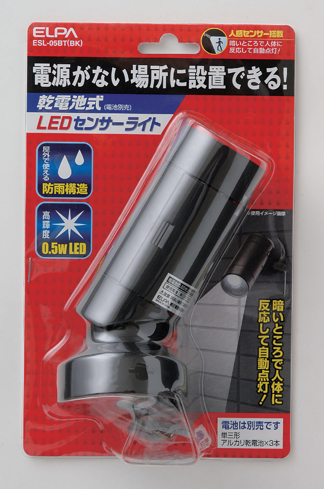 | 商品名 | 【乾電池式】LEDセンサーライト(0.5W) ESL-05BT-BK |