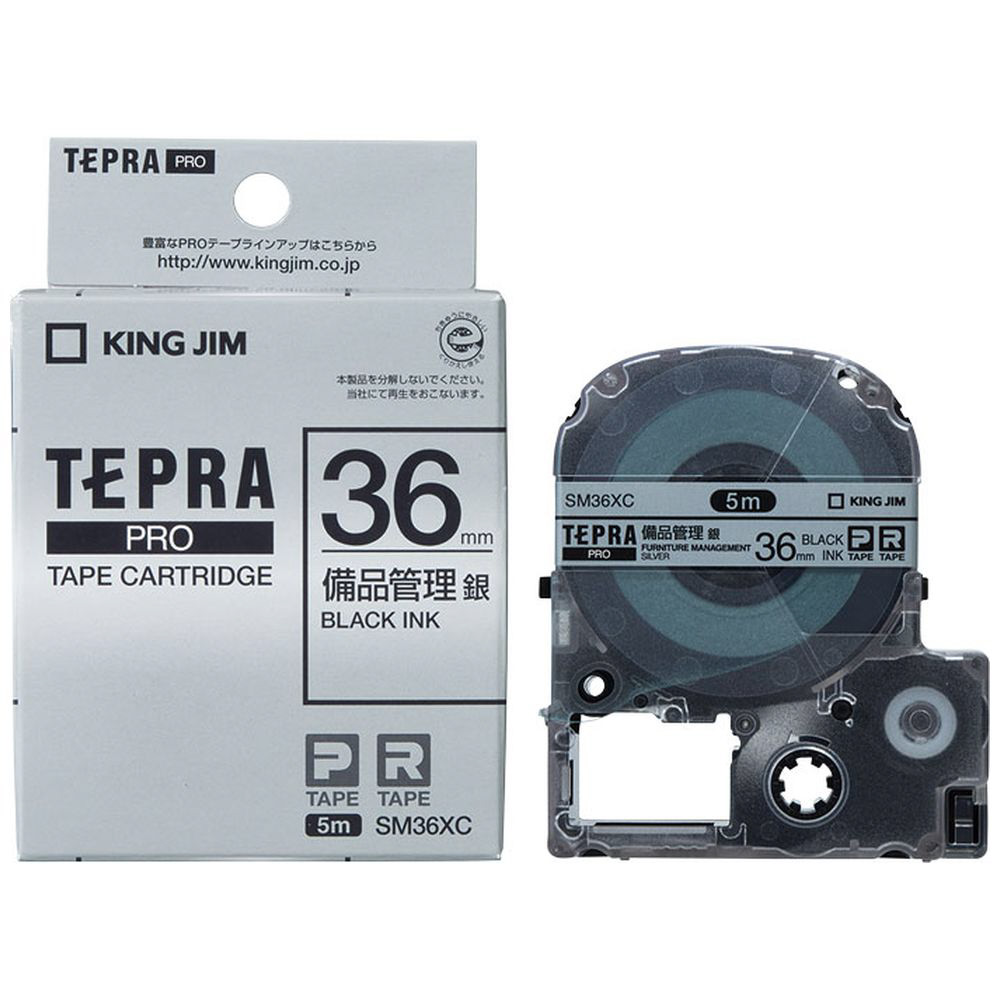 備品管理ラベルテープ 「テプラPRO」(銀テープ/黒文字/36mm) SM36XC 【864】