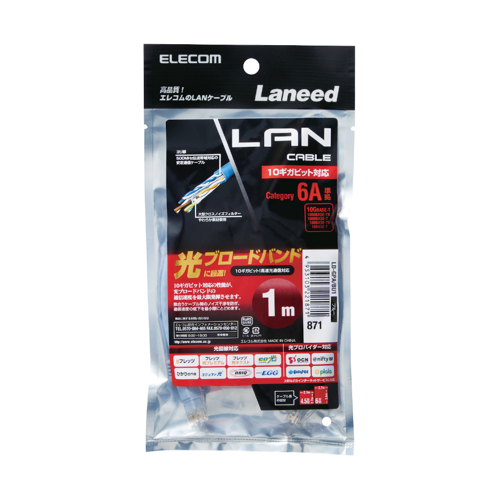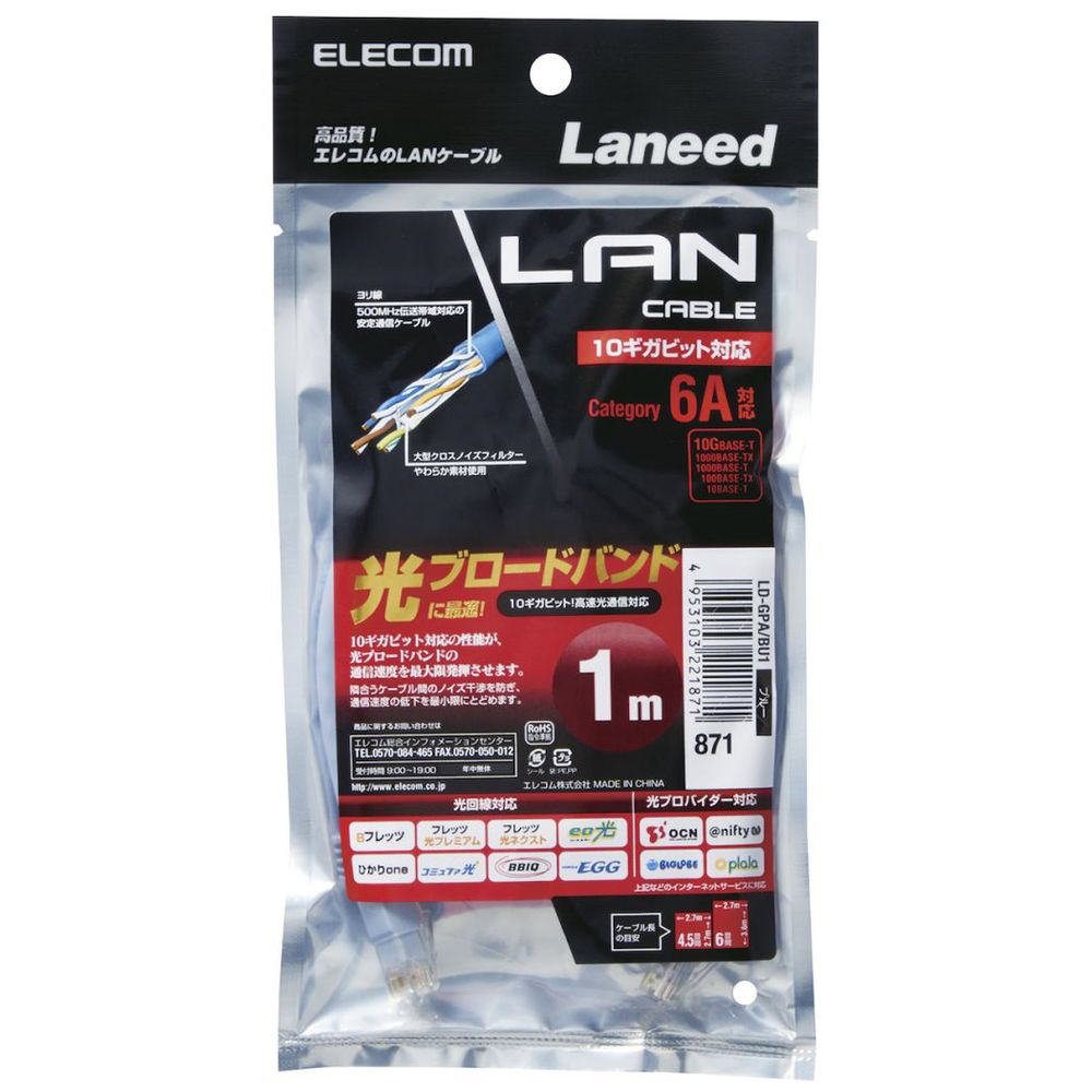 LD-GPA/BU1(カテゴリ6A ストレート LANケーブル/RoHS/ブルー/1.0m) 【864】