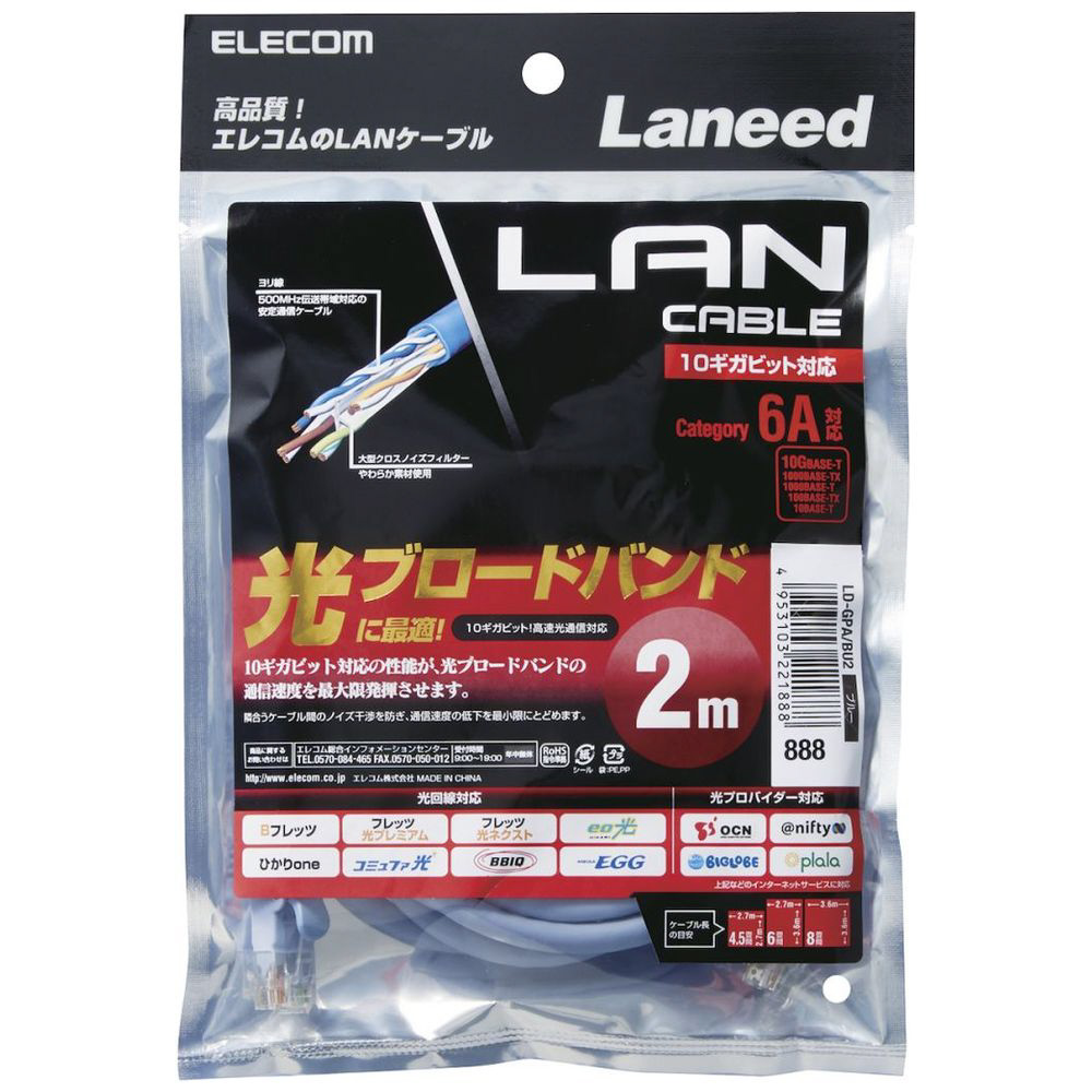 CAT6A対応 超高性能LANケーブル (ブルー・2.0m) LD-GPA/BU2