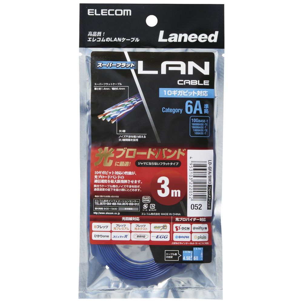 LD-GFA/BM3(カテゴリ6A スーパーフラットLANケーブル/ストレート/ブルーメタリック/3.0m)