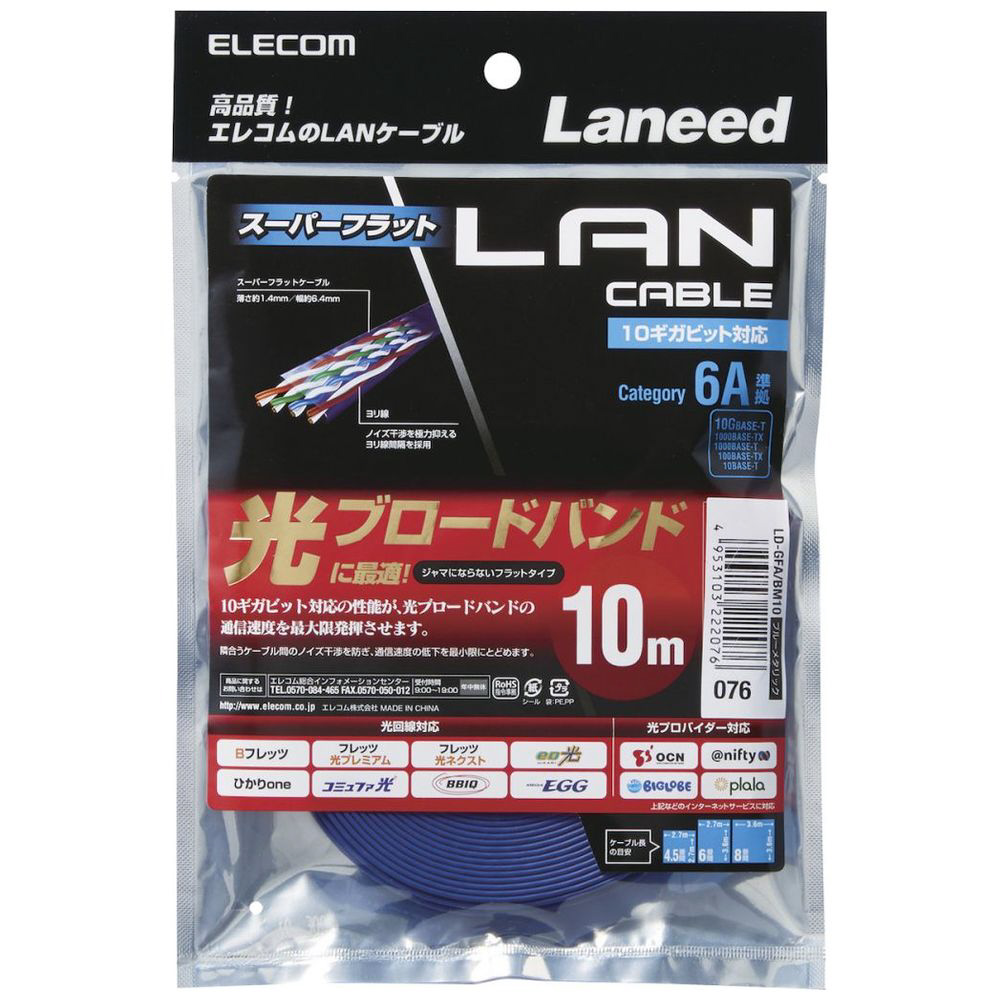 LD-GFA/BM10(カテゴリ6A スーパーフラットLANケーブル/ストレート/ブルーメタリック/10.0m)