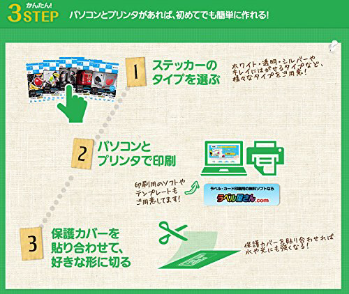 “ホワイトフィルムラベル+透明保護フィルムラベル”ステッカー作りに最適!柄の上に貼っても下地が透けないラベル。(A4サイズ・3セット)