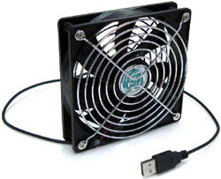 高回転のパソコン取付け用12cm角ファンを採用したUSB接続の”かなり”涼しい卓上扇風機。