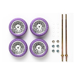 【ミニ四駆】 スーパーX ナット止め大径ホイール&パープルバレルタイヤ(低摩擦ワッシャー付)