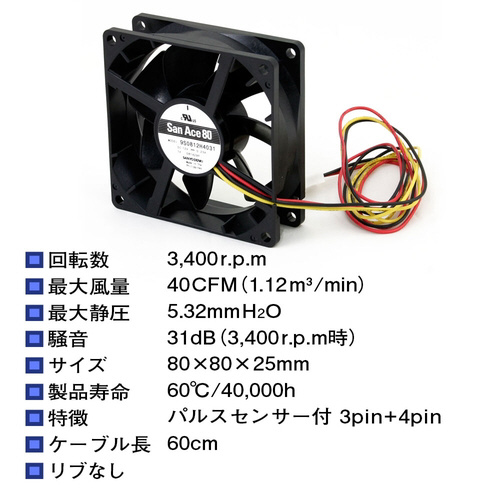 ケースファン(80mm・3400rpm) SF8-S7