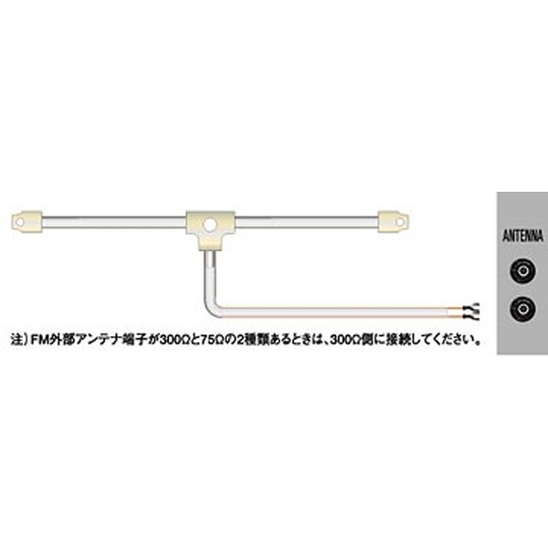 FMチューナー内蔵のステレオラジカセに外部アンテナを接続し、FM放送を受信する場合。