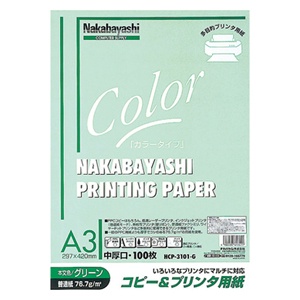 コピー&プリンタ用紙[カラータイプ](中厚口A3・100枚/グリーン) HCP-3101-G