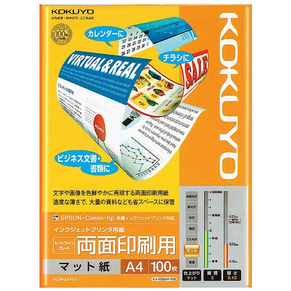 KJ-M26A4-100(IJP用マット紙/スーパーファイングレード/両面印刷用/A4サイズ/100枚)