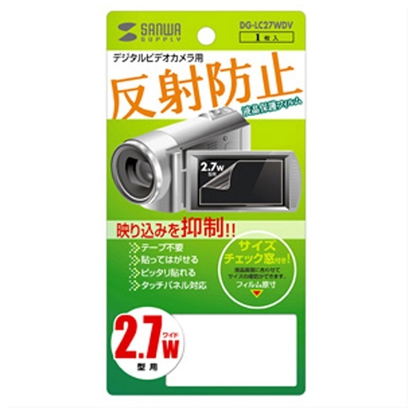 シリコン素材使用で貼付簡単。デジタルビデオカメラ用液晶保護フィルム。2.7型ワイド・反射防止タイプ。