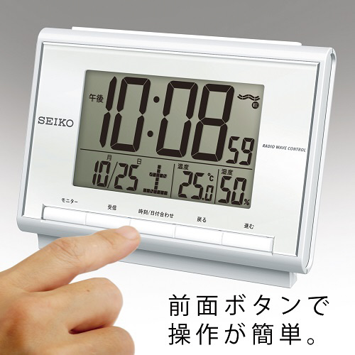 時刻・室温・湿度が表示されるものが欲しく、2種類購入しましたが、こちらの方がボタンが使いやすかったので、もう1台購入することにしました。SEIKOのブランドにも惹かれました。
