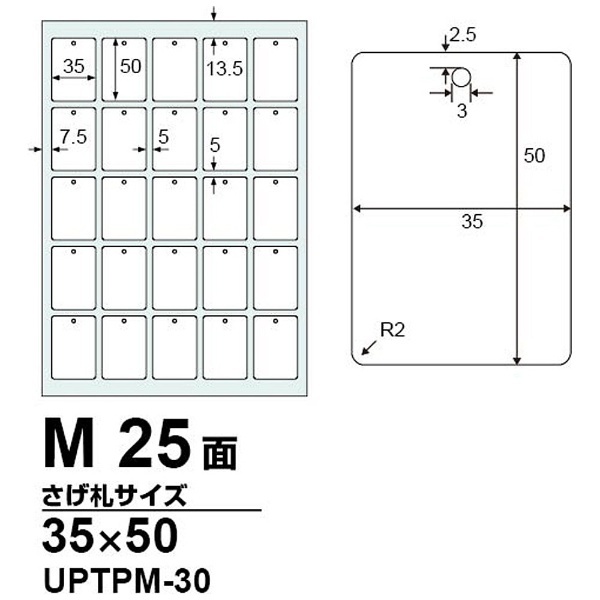 さげ札プリント用紙 M (A4サイズ:25面付・30シート) UPTPM-30