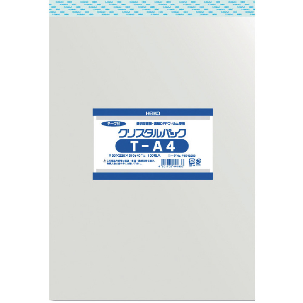 | 商品名 | HEIKO OPP袋 テープ付き クリスタルパック T-A4(100枚入り) 6743200T22.531 |