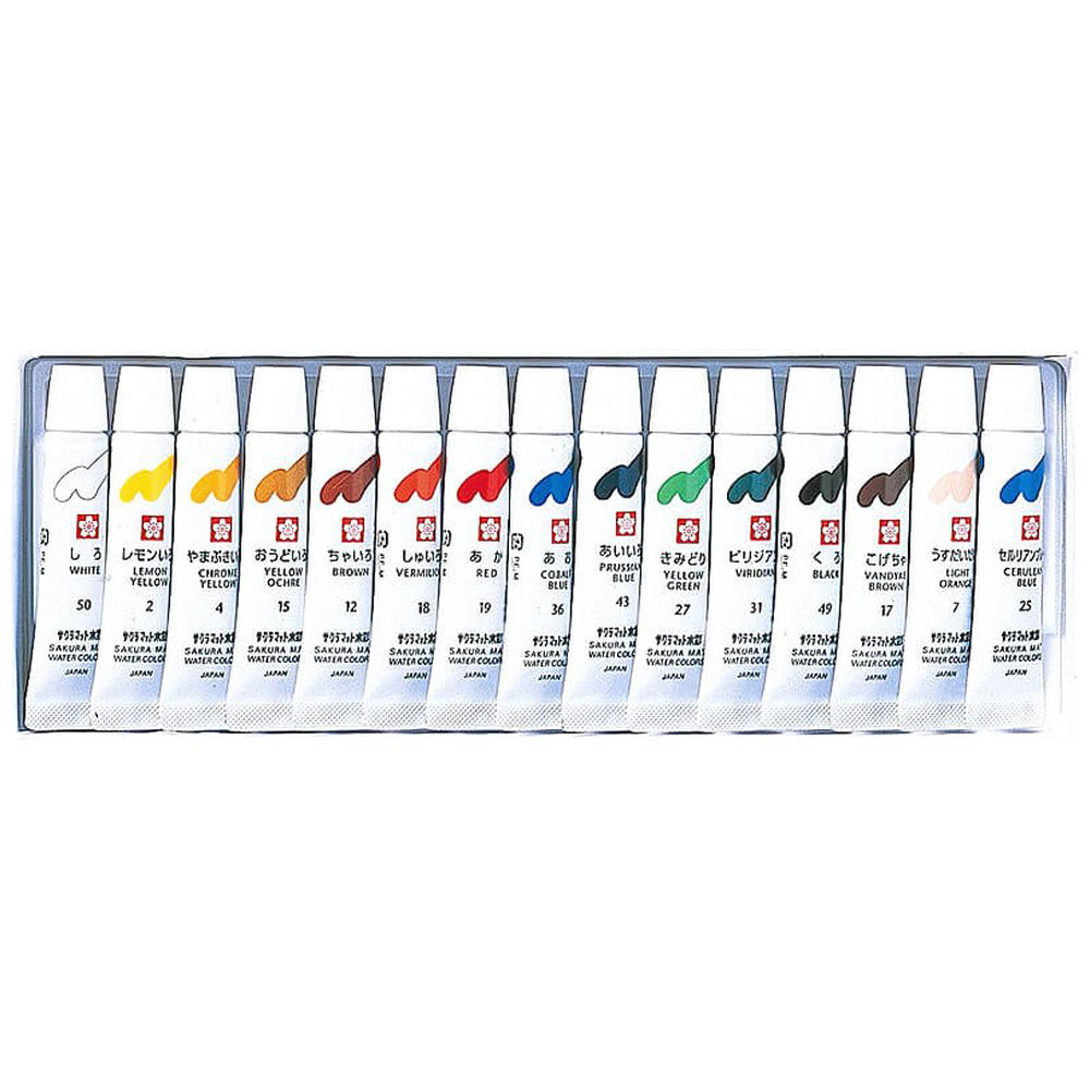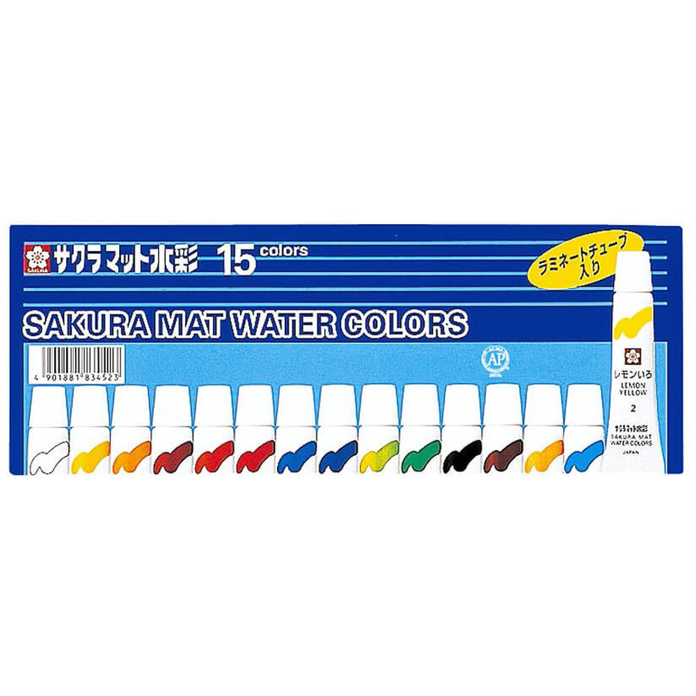 [マット水彩] マット水彩15色ラミネートチューブ入り EMW15 【864】
