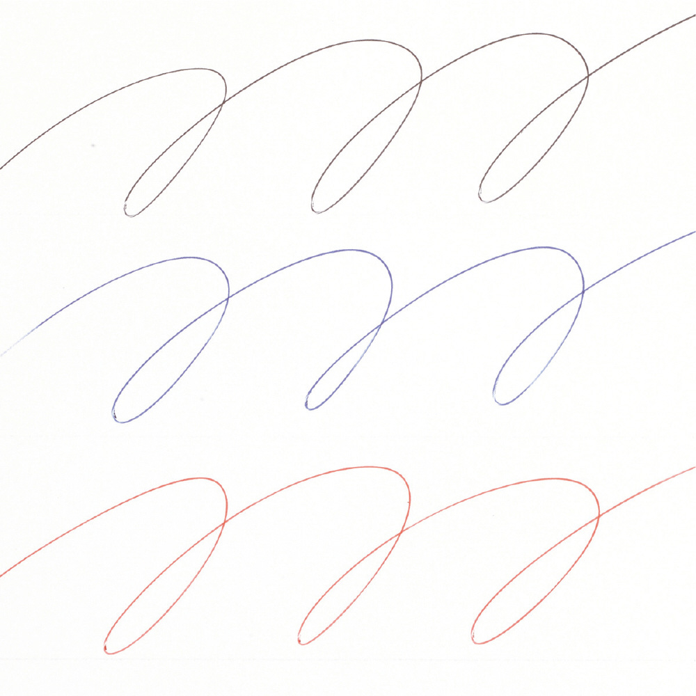 ボール径:1.0mm、機構:ノック式、軸仕上げ:(軸)PC樹脂、ラバーグリップ付き、インク色:黒・赤・青