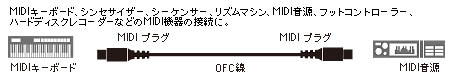 ※MIDIキーボード、シンセサイザー、シーケンサー、リズムマシン、MIDI音源、フットコントローラー、ハードディスクレコーダーなどのMIDI機器の接続に