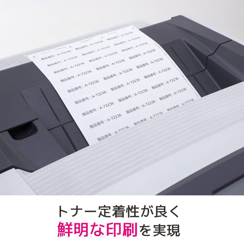 お名前シール用や表示用のラベルが手軽にキレイにつくれます。特殊加工でトナー定着抜群。カラーレーザープリンタでも使用できます。
