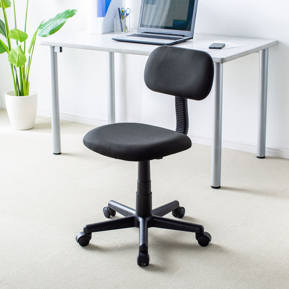 “オフィス向け:布、中 背もたれ”スタンダードでリーズナブルなオフィスチェア。(肘あて無し・ブラック)