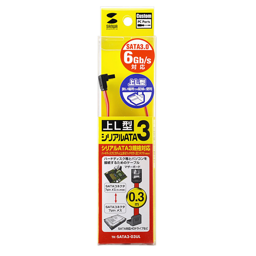上L型シリアルATA3ケーブル(ストレート側ラッチ付き・0.3m) TK-SATA3-03UL