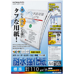 耐水性に優れ、汚れにも強く、丈夫で破れにくいタフなカラーレーザー・カラーコピー用の耐水強化紙。【標準】(A4サイズ・50枚)