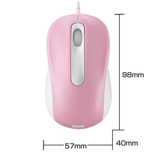 差し込むだけの簡単接続!リーズナブルな左右ボタン+スクロール機能の標準機能マウス。(ピンク)