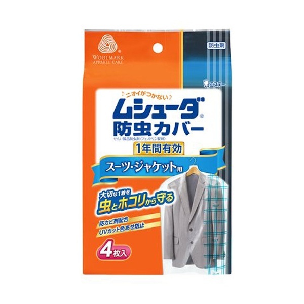 【ムシューダ】 防虫カバー スーツ・ジャケット用 1年防虫4枚入〔防虫剤〕