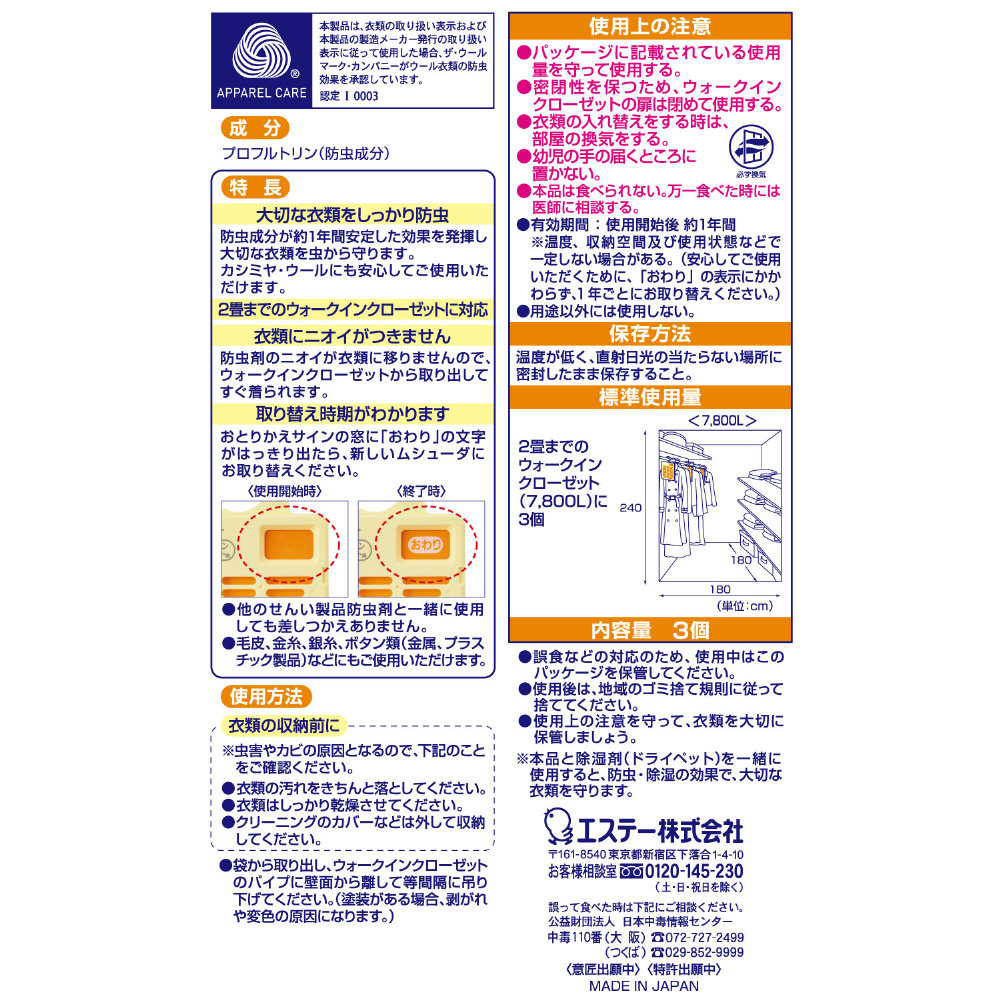 【防虫剤】ムシューダ 1年間有効 ウォークインクローゼット専用 3個入