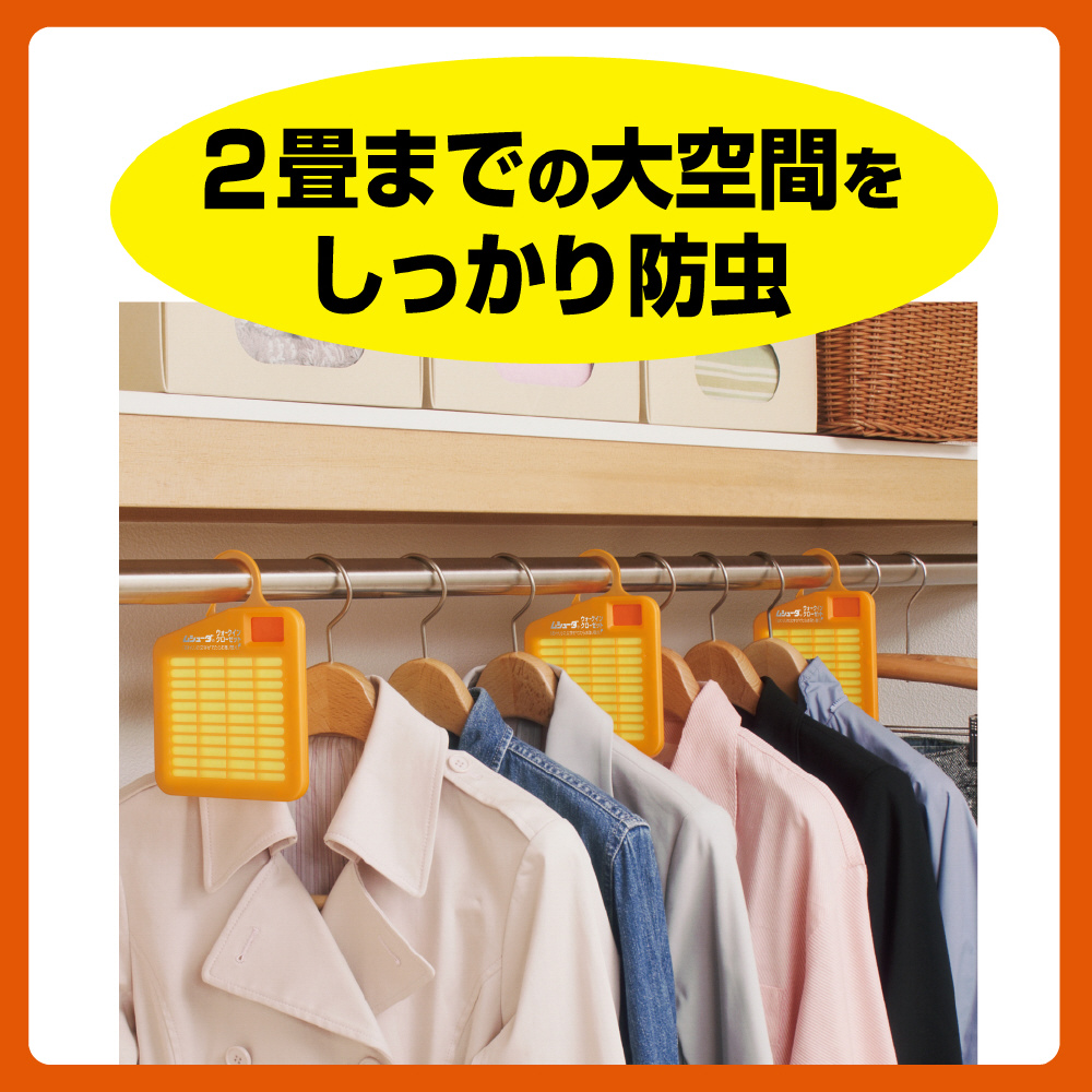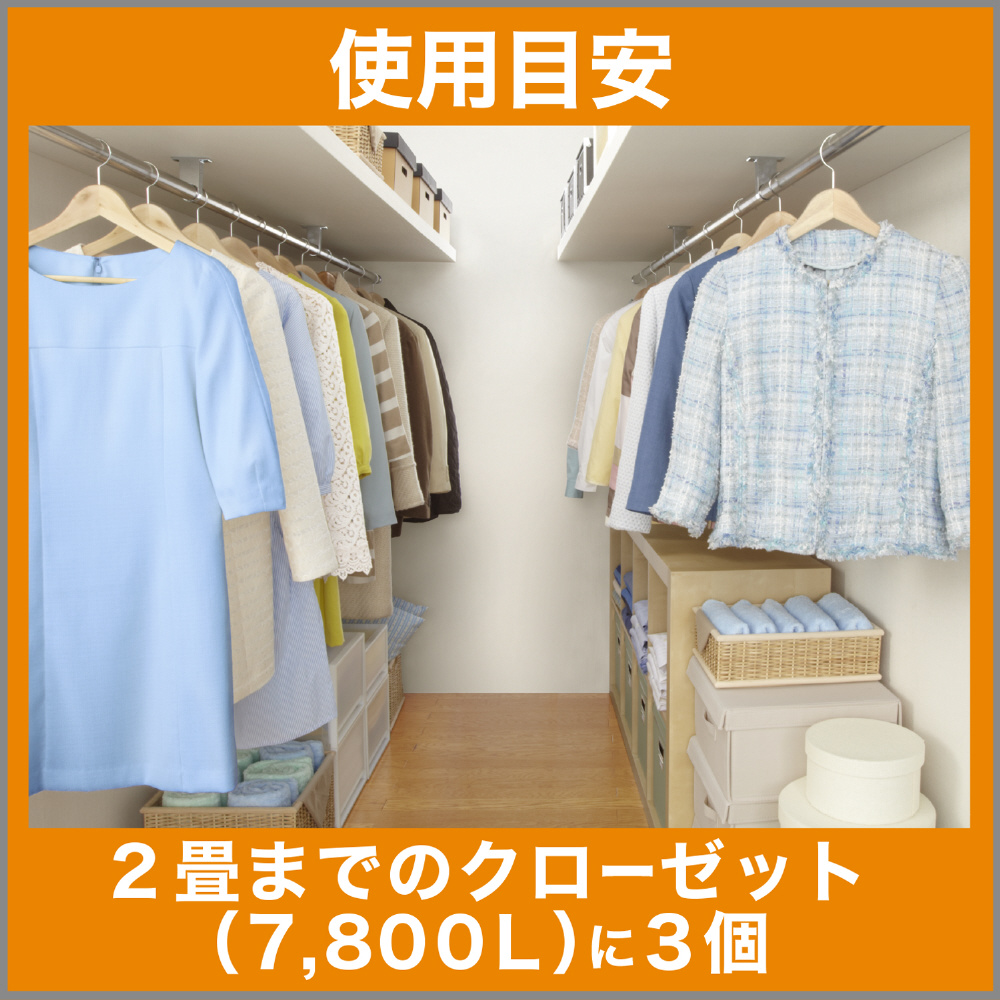 ●大切な衣類を1年間しっかり虫から守ります。●2畳までのウォークインクローゼットに対応。●衣類にニオイがつかないので、取り出してすぐに着られます。●おとりかえサインつきなので、取り換え時期がひとめでわかります。