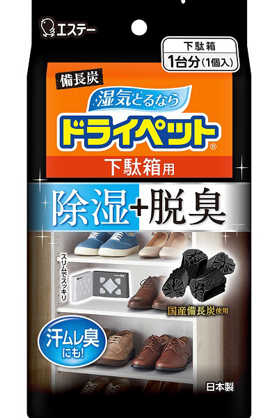 ■備長炭と活性炭が、下駄箱内の気になるニオイを脱臭します。